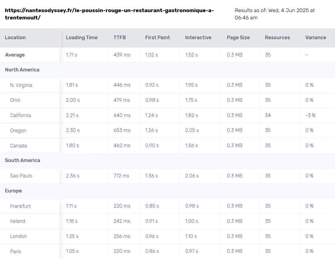 Grâce à QUIC.cloud et une configuration soignée via LiteSpeed Cache, les résultats sont très largement au-dessus des attentes :