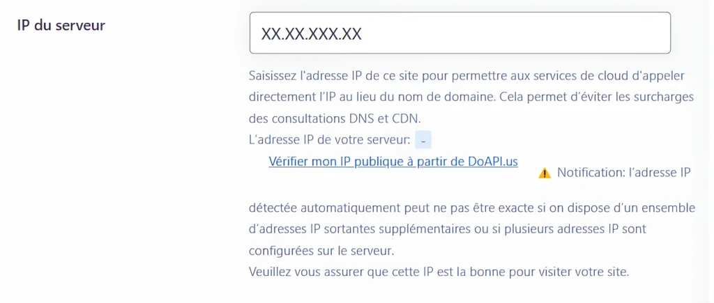 Renseigner l’adresse IP de votre serveur